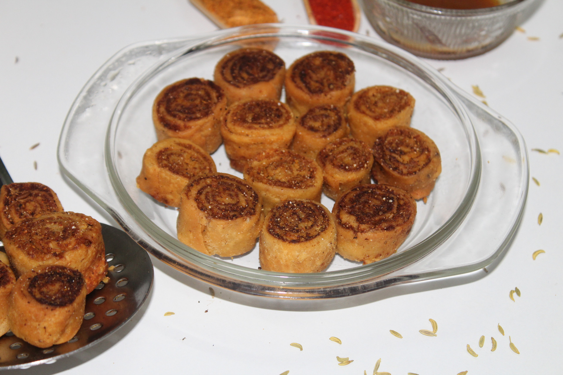 Enjoy these delicious bhakarwadis with a nice ginger tea.